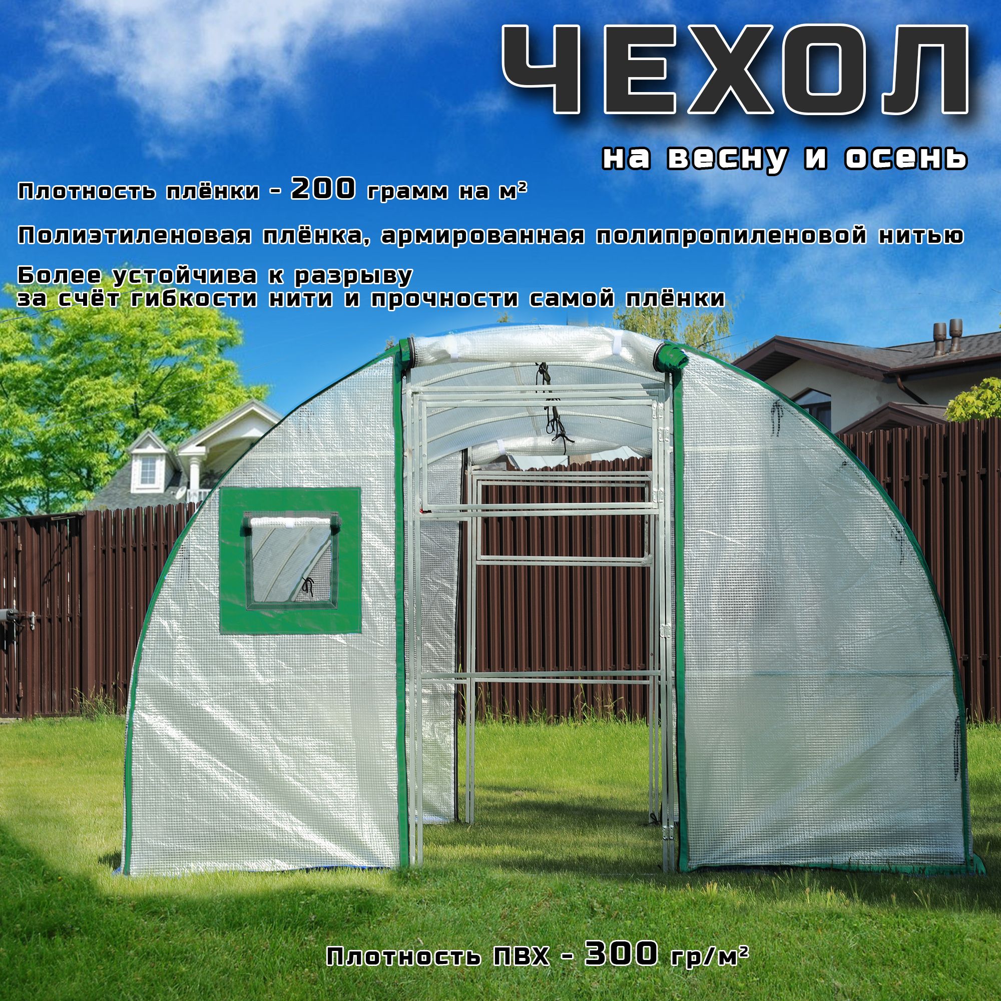 Краткое описание «Чехол для теплицы из армированной пленки 8х3х2,1, "Премиум"»