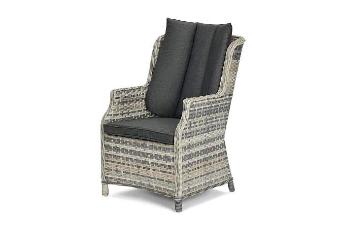 Кресло представляет собой алюминиевый каркас, оплетенный искусственным ротангом. Оба этих материала обеспечивают легкость и устойчивость кресла, его прочность, и его способность выдерживать различные погодные условия – яркое солнце, осадки, перепады температур. Размер кресла 62х94,5х77 см.