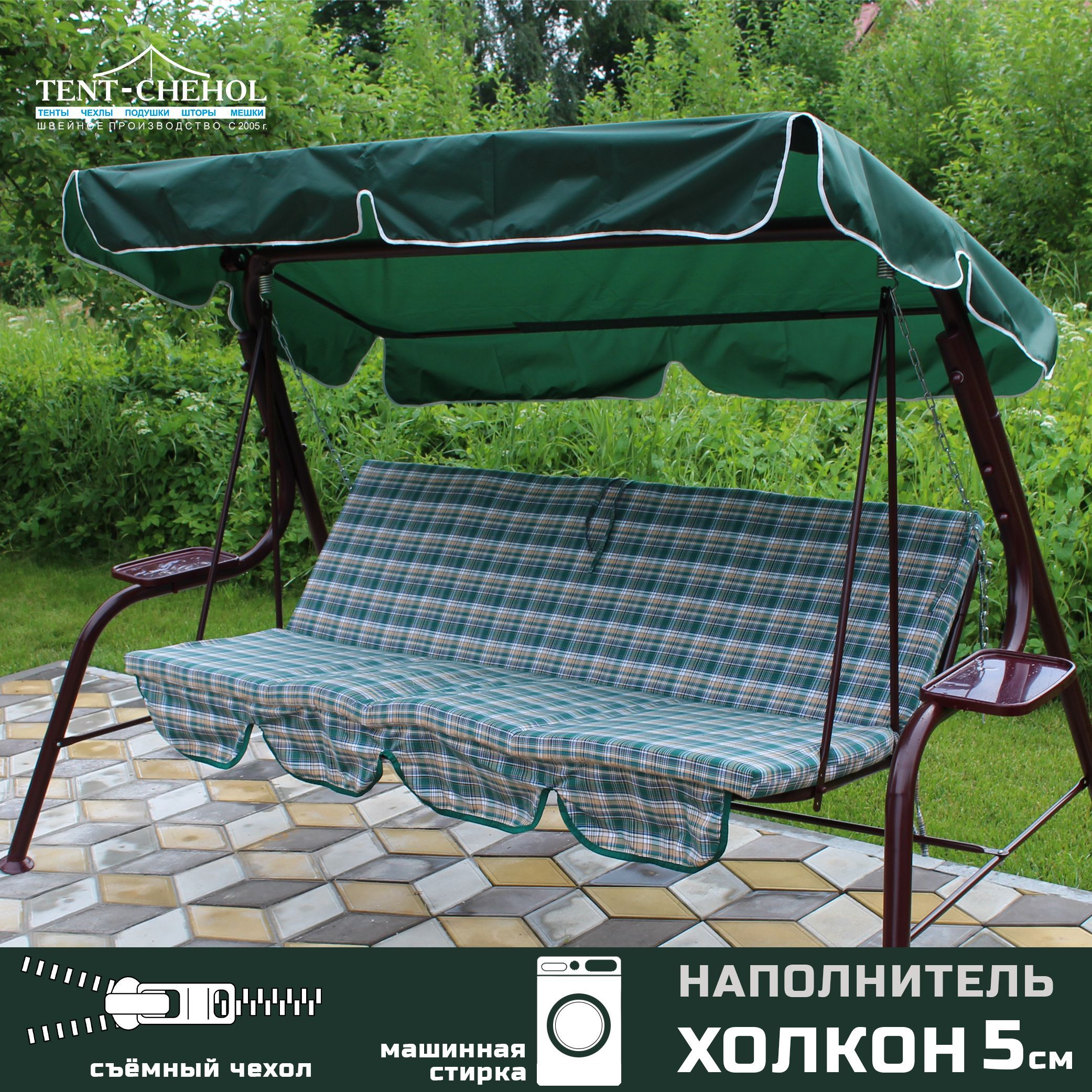 Краткое описание «Тент и матрас для садовых качелей, 182х100 и 170х55х55 еловый, зелёная шотландка»