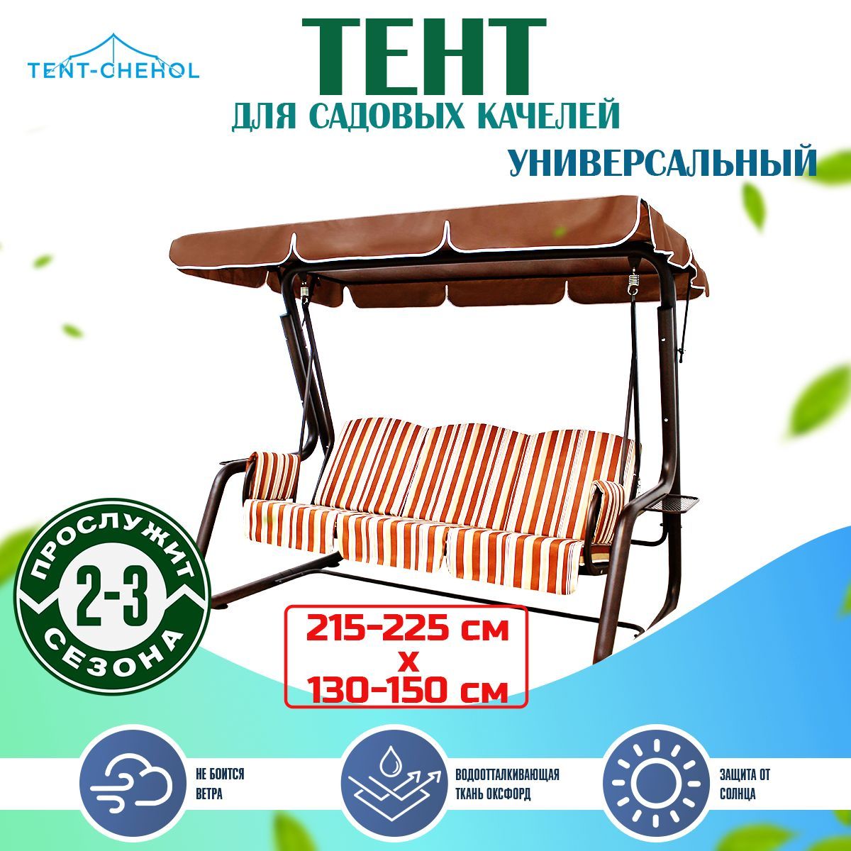 Универсальный тент для садовых качелей, коричневый, длина 210-225, ширина 130-15